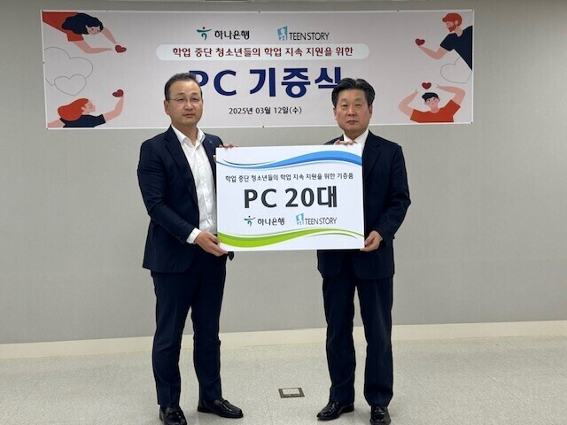 사단법인 틴스토리(이사장 유연수)는 지난 12일 하나은행(은행장 이호성)으로부터 학업 중단 청소년을 위한 디지털 교육 환경 개선을 위해 PC 20대를 기부받았다.