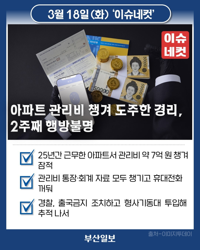아파트 관리비 챙겨 도주한 경리, 2주째 행방불명
