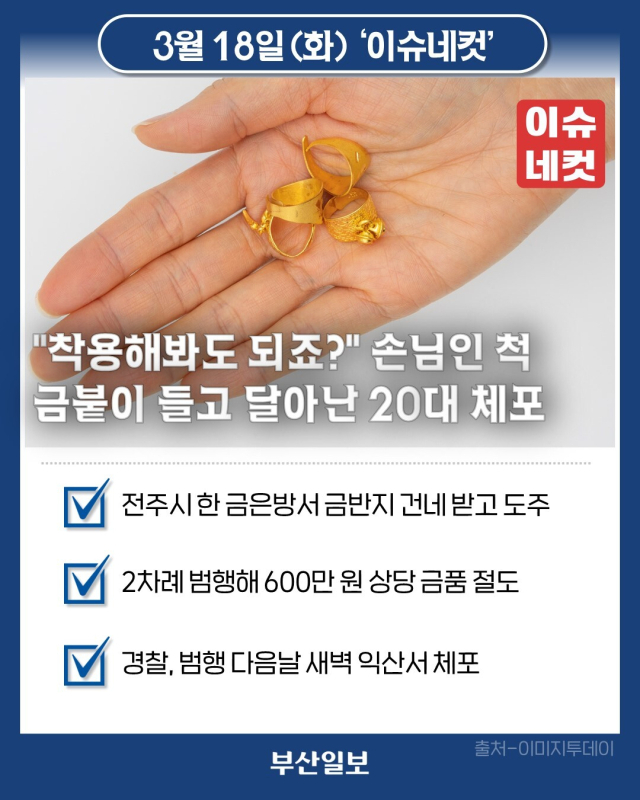 "착용해봐도 되죠?" 손님인 척 금붙이 들고 달아난 20대 체포