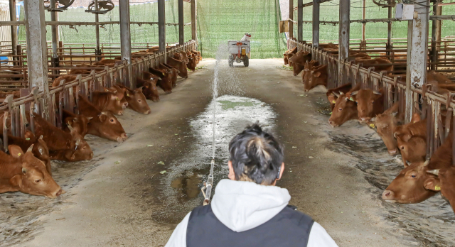 전남 지역을 중심으로 구제역이 발생함에 따라 부산시는 지역 축산농가 139곳에 있는 모든 소·염소를 대상으로 구제역 예방접종을 실시하고, 농가 주변에 소독시설을 운영하는 등 방역을 강화하고 있다. 18일 기장군 철마면 한 한우농장에서 구제역 예방을 위한 방역 작업이 진행되고 있다.