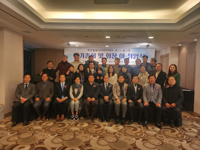 부산일보CEO아카데미 제7기 원우회(회장 유진혁, (주)반석건설 대표이사)는 지난 18일 롯데호텔에서 원우 30여 명이 참석한 가운데 정기총회 및 회장 이취임식을 가졌다.