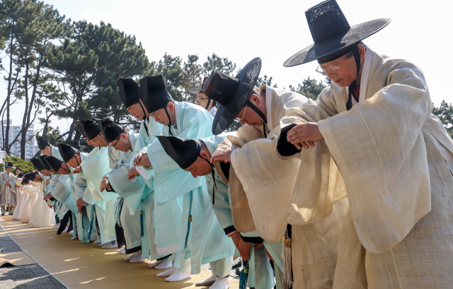 제421회 충렬사 춘기제향이 19일 오전 부산 동래구 충렬사에서 봉행됐다. 충렬사에는 임진왜란 당시 부산에서 순국한 동래부사 송상현 장군, 부산진첨사 정발 장군, 다대진첨사 윤흥신 장군 호국선열의 위패 93위가 모셔져 있다.