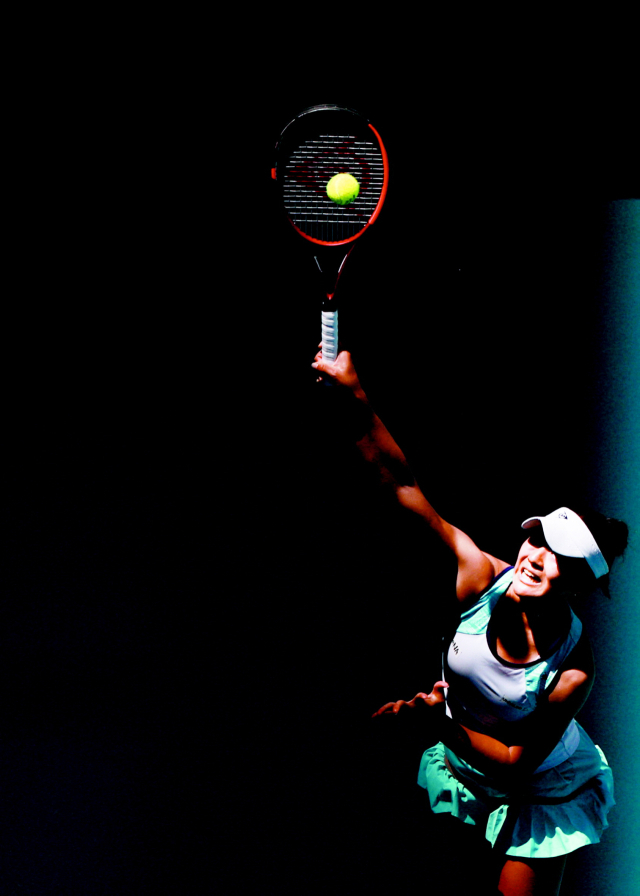 이시이 사야카(일본)가 19일 미국 플로리다 마이애미에서 열린 마이애미 오픈 테니스대회 둘째 날 경기에서 서브를 하고 있다. AFP연합뉴스