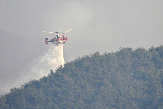산불 진화를 위해 소방 헬기 43대와 장비 121대, 인력 1300여 명이 동원됐지만 불길은 좀처럼 잡히지 않고 있다. 김현우 기자