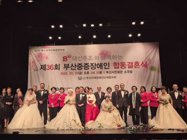(사)부산지체장애인단체협의회(회장 유영호) 주관 제36회 부산중증장애인합동결혼식이 지난 21일 부산시민회관 소극장에서 열려 4쌍이 결혼식을 올렸다.