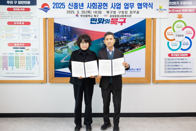 부산 북구(구청장 오태원)는 지난 20일 공창종합사회복지관과 일자리 창출로 사회적 가치를 실현하는 ‘신중년 사회공헌사업’ 추진을 위한 업무협약을 체결했다.