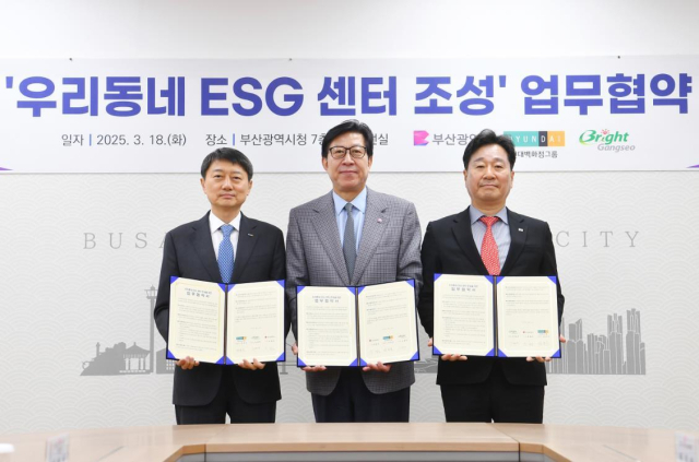 부산 강서구(구청장 김형찬)은 지난 18일 부산시청에서 부산시(시장 박형준), 현대백화점 그룹(현대 지에프홀딩스 대표이사 장호진)과 ‘우리동네 ESG센터 조성사업’ 추진 업무협약을 맺었다.