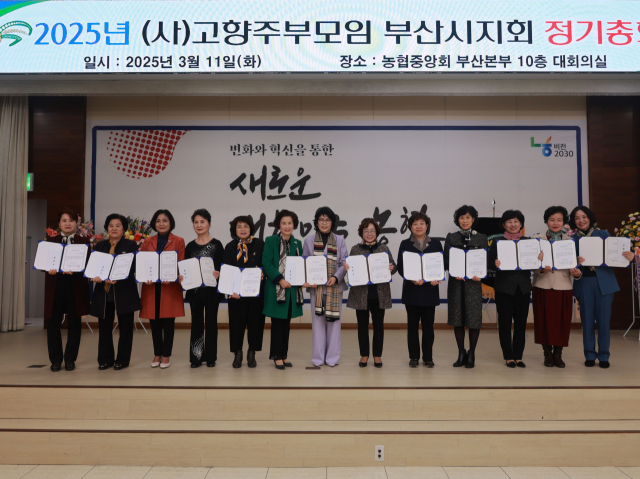 고향주부모임 부산시지회(시지회장 심정옥)는 지난 11일 농협부산본부(본부장 이수철)에서 열린 정기총회에서 지역 학생들에게 장학금을 전달했다.