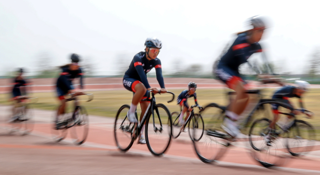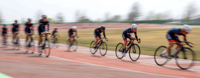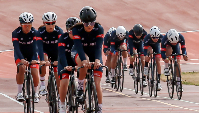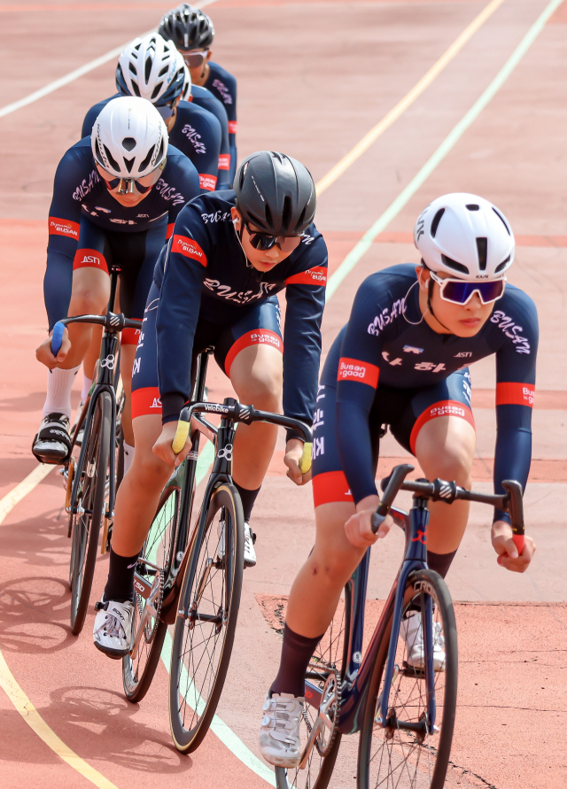 제54회 전국소년체육대회 부산대표 선발전 ‘2025 부산 초,중학생 체육대회’가 열린 25일 부산 사상구 삼락생태공원 사이클경기장에 사이클종목 참가선수들이 트랙을 질주하고 있다. 김종진 기자 kjj1761@