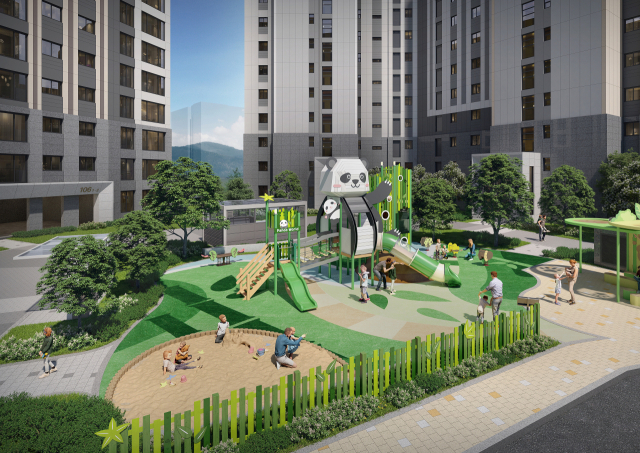 금호건설이 부산 에코델타시티 24블록에 1025가구 규모의 ‘에코델타시티 아테라’의 본격 분양에 나선다. 금호건설이 부산에서 처음으로 선보이는 ‘아테라’ 브랜드라 더욱 관심이 쏠린다. 해당 아파트의 전경을 담은 투시도와 단지 내 어린이 놀이터, 문주(아래 사진)의 모습. 금호건설 제공