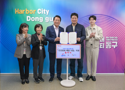 부산 동구(구청장 김진홍)가 25일 ㈜hy 부산지점과 중장년 1인가구 고독사 예방을 위한 '동구 건강음료 배달 지원 사업'을 추진을 위한 업무협약을 체결했다.