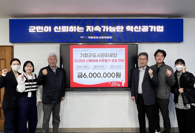 부산시 기장군도시관리공단(이사장 김윤재)도 지난달 26일 경남 산청, 경북 의성, 울산 울주 지역에 각 200만 원씩, 총 600만 원을 지원했다. 지원금은 희망브리지 전국재해구호협회를 통해 전달된다.