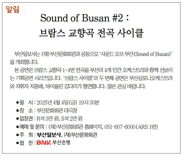 [알림] Sound of Busan #2 : 브람스 교향곡 전곡 사이클