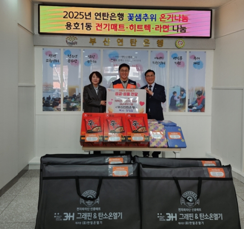 부산 남구 용호1동행정복지센터는 부산연탄은행(대표 강정칠)이 관내 어려운 이웃들을 위해 전기매트(125,000원*25개, 히트텍(33,000원*70벌), 라면(16,000원*50개)을 기부했다고 밝혔다.