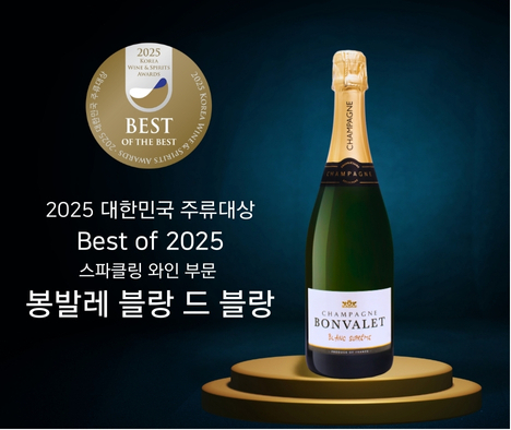 수입주류 유통기업 니혼슈코리아는 대표 샴페인 봉발레(Bonvalet)의 ‘블랑 드 블랑(Blanc de Supreme)’이 ‘2025 대한민국 주류대상’에서 스파클링 와인 부문 최고상인 ‘베스트 오브 2025’를 수상했다고 30일 알렸다.