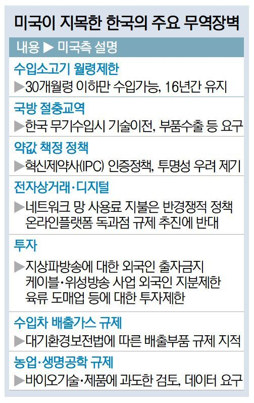 소고기·국방·디지털·제약… 미 "한국 무역장벽 광범위하게 높다"
