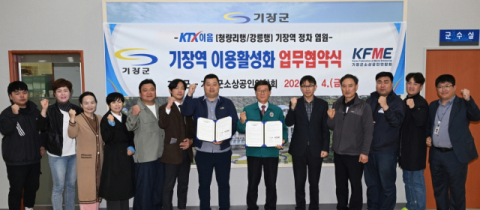 부산 기장군(군수 정종복)은 지난 4일 기장군소상공인연합회(이하 ‘소상공인연합회’)와 ‘기장역 이용 활성화를 위한 업무협약(MOU)’을 체결하면서, KTX-이음(청량리행/강릉행) 기장역 유치를 위한 지역 협력체계 구축에 나선다고 밝혔다.