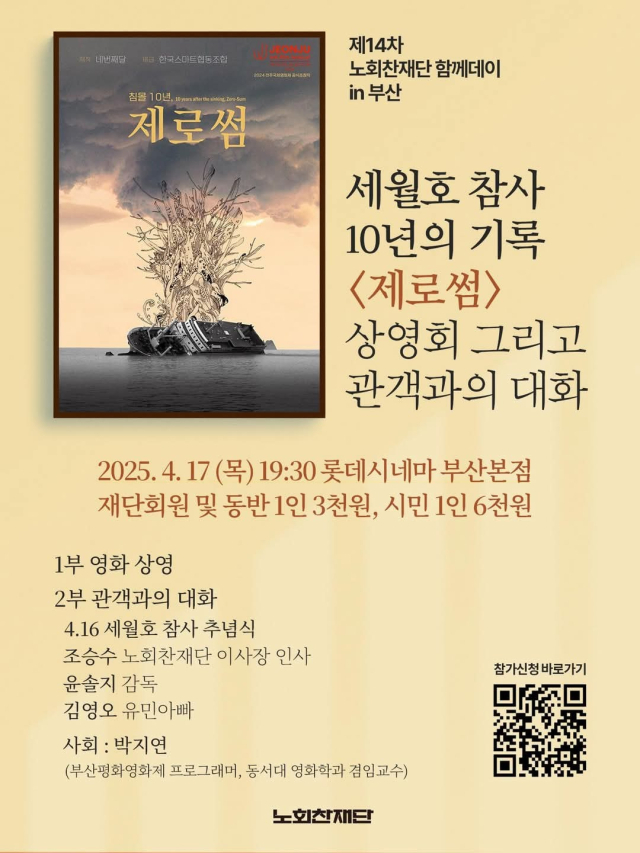 공동체 상영회도 계속된다. 세월호 11주기 다음 날인 오는 17일 오후 7시 30분엔 노회찬재단과 함께하는 상영회가 롯데시네마 부산본점에서 열린다. 윤솔지 감독이 다큐 출연자인 유민 아빠 김영오 씨와 함께 참석해 관객과 대화에 나선다. 재단 회원은 동반 1인까지 3000원, 일반 시민은 6000원에 볼 수 있다.