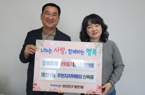 부산진구 범천1동(동장 김주영)은 7일 신육홍 주민자치위원장이 영남 지역 산불피해 이재민을 위한 성금 30만 원을 기탁했다고 밝혔다.