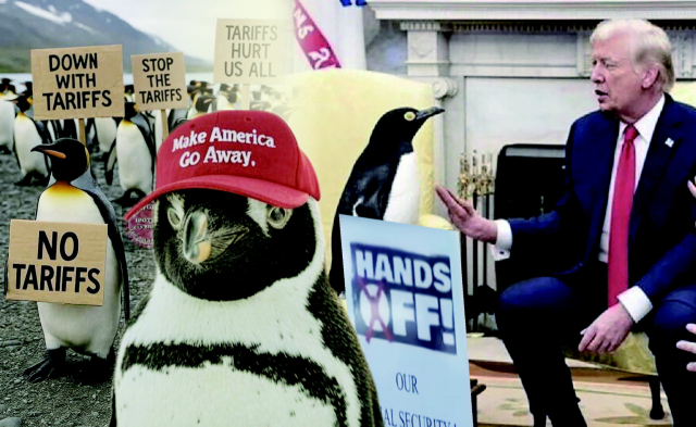 도널드 트럼프 미국 대통령이 남극 인근의 외딴섬인 허드 맥도널드 제도까지 10%의 상호관세를 부과한 것을 두고 이를 비판하거나 조롱하는 밈이 최근 온라인에서 확산하고 있다. 특히 이들 밈의 특징은 펭귄을 앞세웠다는 점이다. 허드 맥도널드 제도는 미국이 관세를 부과한 지역으로, 호주 서부 해안도시 퍼스에서 남서쪽으로 3200㎞나 떨어져 있으며 사람이 살지 않고 주로 펭귄이 서식하는 곳이다. 이에 소셜미디어에는 이곳 ‘주민’인 펭귄을 전면에 내세워 트럼프의 관세 정책을 조롱한다.