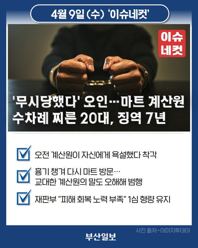'무시당했다' 오인…마트 계산원 수차례 찌른 20대, 징역 7년 [이슈네컷]