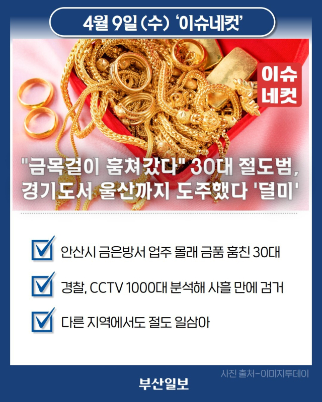 "금목걸이 훔쳐갔다" 30대 절도범, 경기도서 울산까지 도주했다 '덜미'