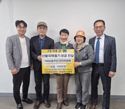 부산진구 가야2동(동장 김영미)은 9일 가야2동 주민자치위원회(위원장 최석순)가 산불피해 돕기 성금으로 100만 원을 기탁했다고 전했다.