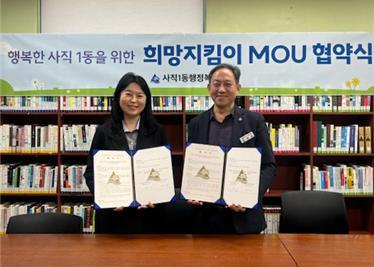 부산 동래구 사직1동(동장 김희섭)은 최근 관내 영어학원 퀀텀잉글리쉬(원장 신민재)와 복지위기가구 발굴단 ‘희망 지킴이’협약을 체결했다고 밝혔다.