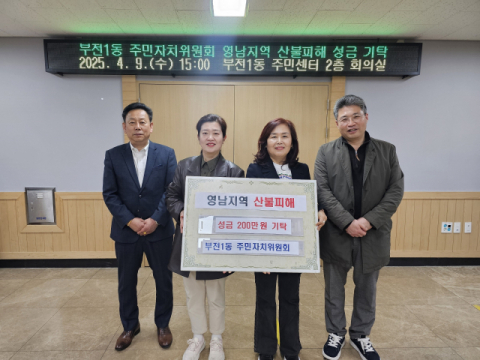 부산진구 부전1동 주민자치위원회(위원장 허명희)는 지난 3월 영남지역에서 발생한 대형산불 피해 지원을 위한 성금 200만 원을 부전1동(동장 하기수)에 전달했다.