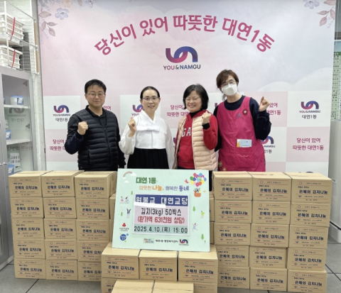 원불교 대연교당(교무 박법일)은 10일 관내 어려운 이웃에게 전달해 달라며 직접 담근 김치(3kg) 50박스를 부산 남구 대연1동 행정복지센터에 기부했다고 밝혔다.