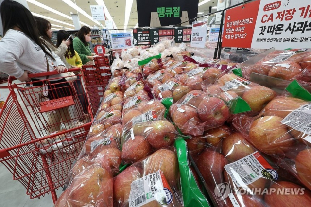 서울 한 대형마트에 사과가 진열돼 있다. 연합뉴스