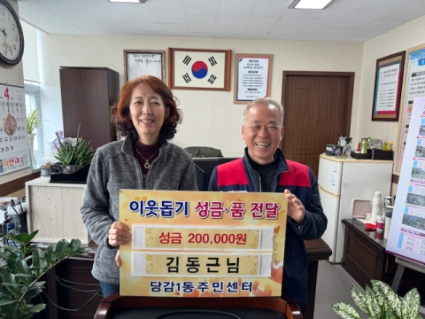부산진구 당감1동(동장 오명옥)은 14일 안전보안관으로 근무하는 김동근씨로부터 영남지역 산불 피해를 입은 주민을 위한 성금 20만 원을 기탁받았다고 밝혔다.