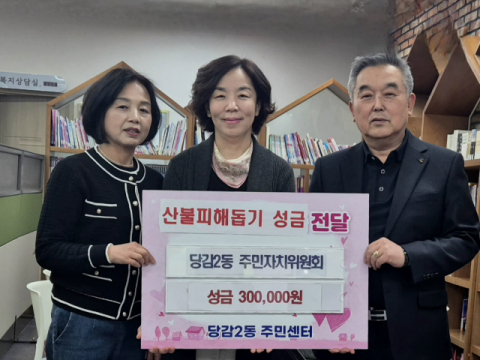 부산진구 당감2동 주민센터(동장 정영희)는 지난 11일 당감2동 주민자치위원회(위원장 허영진)에서 영남지역 산불 피해 지원을 위한 성금 30만 원을 기탁했다고 밝혔다.