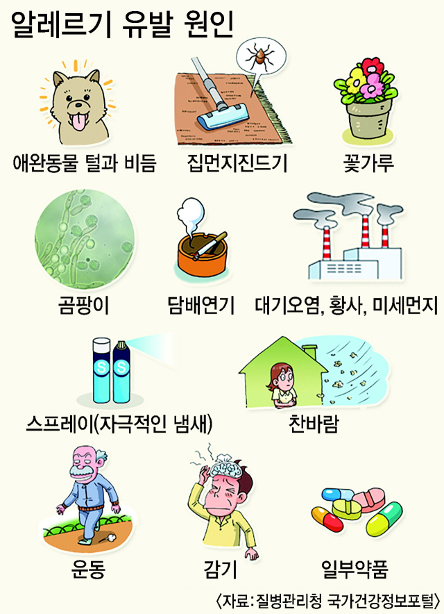 알레르기 질환 치료의 기본은 원인이 되는 물질을 피하는 데 있는 만큼 어느 계절에 증상이 악화되는지 아는 것이 중요하다. 봄철에 주로 악화된다면 자작나무, 참나무, 오리나무 등의 목초 꽃가루 알레르기고, 가을철에 주로 악화된다면 잡초 꽃가루에 의한 가능성이 의심된다. 동남권원자력의학원 이미란 소아청소년과 과장은 “계절에 관련 없이 증상이 발생한다면 집먼지·진드기, 실내 곰팡이, 반려동물 등 실내 항원으로 인한 알레르기를 의심해볼 수 있다”고 설명했다.