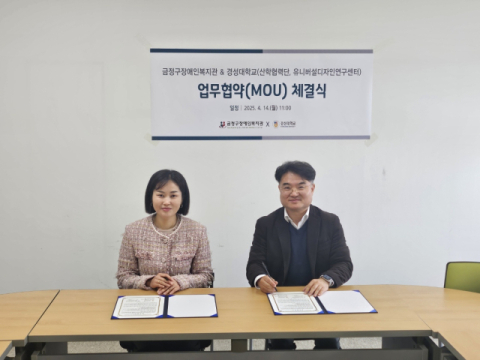 부산 금정구장애인복지관(관장 김은영)은 경성대학교 산학협력단(단장 최주용) 및 유니버설디자인연구센터(센터장 이해구)와 14일 금정구장애인복지관 내 ‘의사소통 무장애 환경조성’을 위한 협력을 다짐하는 업무협약을 체결했다고 밝혔다.