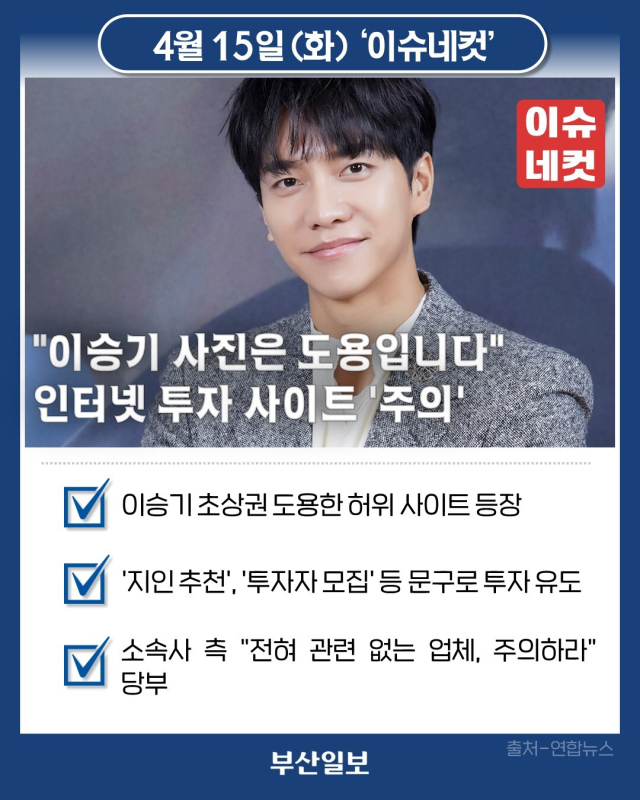 "이승기 사진은 도용입니다" 인터넷 투자 사이트 '주의'