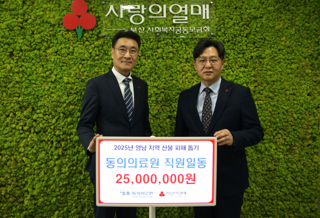 동의의료원(의료원장 이인길)은 최근 대규모 산불로 피해를 입은 지역의 복구와 이재민 지원을 위한 특별성금 2500만 원을 지난 15일 부산사회복지공동모금회(회장 이수태·부산사랑의열매)에 전달했다.