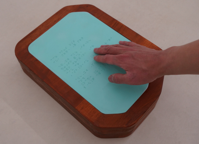 마지막은 한국과 네덜란드를 오가며 활동하는 김익명 작가가 준비한 ‘깊은 곳’ 시리즈이다. 작가는 특정 장소의 사회적, 생태적 맥락을 고려하는 사운드 아티스트다. 최근에는 여러 명의 예술가, 큐레이터, 연구자로 구성된 콜렉티브 ‘갯벌 랩’ 멤버로 활동하면서, 한국의 갯벌과 습지를 연구한 워크숍을 진행했다. 이번 시리즈는 고래의 이동이나 소통을 탐지하는 하이드로폰을 사용해, 낙동강의 수심 깊은 곳에서 발생하는 초저주파를 탐지, 수집한 후 이를 우리가 감각할 수 있도록 시각, 청각, 촉각적으로 재구현했다. 김 작가는 “직접 만난 따개비나 물길 움직임을 점자로 변환하는 등 작가로서 깨달음을 시청각적으로 구현하면서 우리가 들어갈 수 없는 ‘깊은 곳’이라는 제목으로 상상했다”고 설명했다.