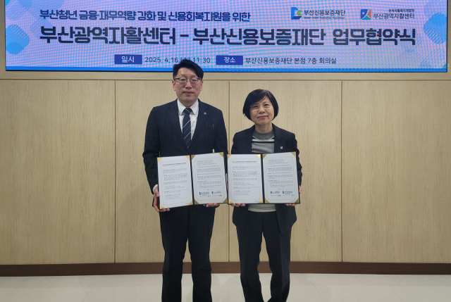 부산신용보증재단(이사장 성동화)은 지난 16일 재단 본점 7층에서 부산광역자활센터(센터장 이윤희)와 부산 청년 금융·재무 역량 강화와 신용 회복 지원을 위한 업무 협약을 지난해에 이어 올해도 체결했다.
