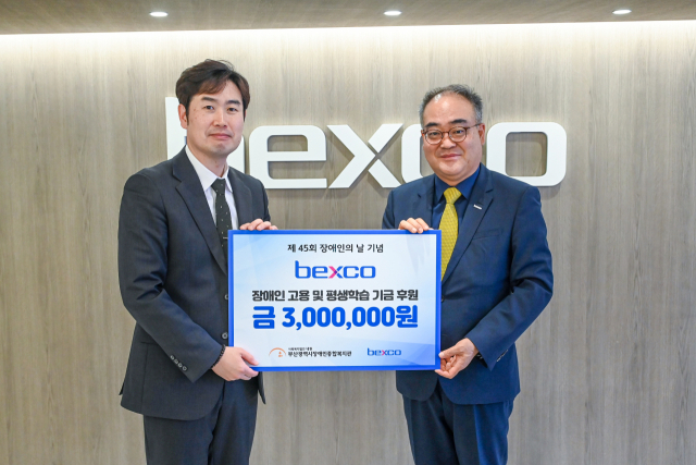 벡스코(BEXCO·대표이사 손수득)는 지난 16일 장애인 일자리 창출 및 평생학습 기금 마련을 위한 후원금 300만 원을 부산광역시 장애인종합복지관에 전달했다.