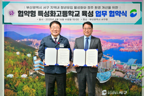 부산 서구(구청장 공한수)는 16일 부산관광고등학교(교장 정정부)와 협약형 특성화고등학교 육성을 위한 업무 협약을 체결하고, 부산관광고등학교의 ‘협약형 특성화고등학교’ 공모 사업(교육부) 선정을 위해 적극 협력하기로 했다.