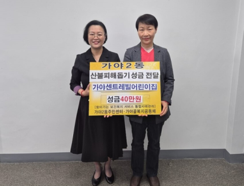 부산진구 가야2동 가야센트레빌어린이집(원장 황혜진)은 지난 18일 초대형 산불로 피해를입은 지역민들을 위해 어린이집 소속 원아, 학부모 및 교원 등이 십시일반 모금한 성금 40만 원을 대한적십자사 부산지사에 기탁했다.