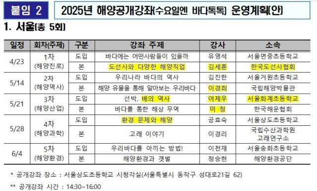 2025년 해양공개강좌(수요일엔 바다톡톡) 포스터. 해수부 제공