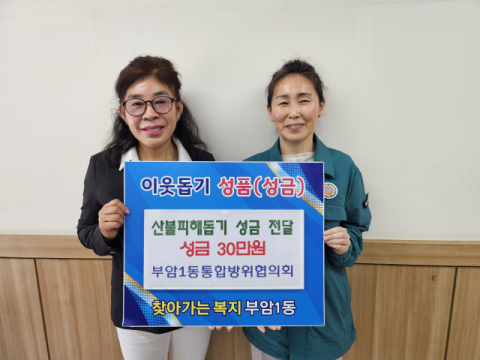 노진숙 부암1동장은 “이번 성금이 산불 피해 주민들에게 실질적인 도움이 될 것”이라며 “기부해주신 부암1동 통합방위협의회에 감사하고 그 마음이 잘 전달될 수 있도록 하겠다”고 전했다.