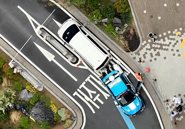 사건 당시 아파트 주민이 촬영한 승합차 견인 모습. 연합뉴스
