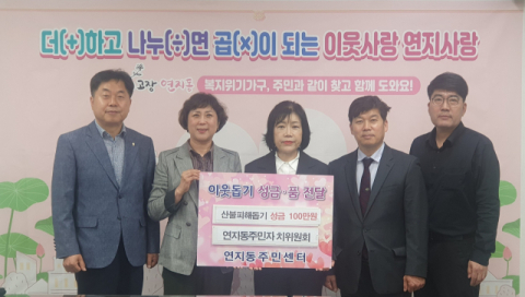 부산진구 연지동 주민자치위원회(위원장 김선미)는 지난 24일 대형산불 피해 지원을 위한 성금 100만 원을 연지동(동장 전은혜)에 전달했다.