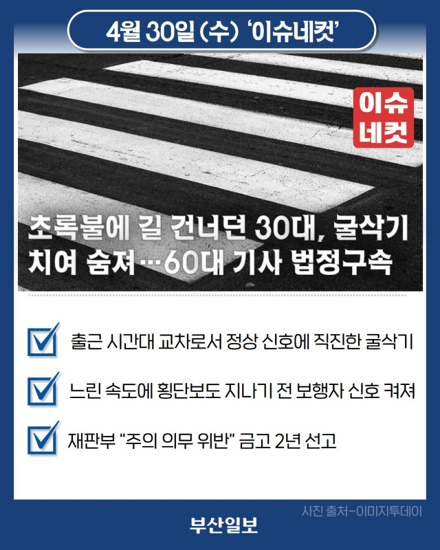 초록불에 횡단보도 건너던 30대, 굴삭기에 치여 숨져…60대 기사 법정구속 [이슈네컷]