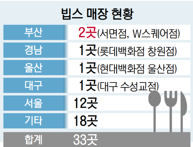 30일 외식업계에 따르면 CJ푸드빌이 운영하는 ‘빕스’는 전날 부산 대표 상권인 서면에 ‘빕스 부산서면점’을 열었다. 앞서 20년간 서면에 자리 잡았던 빕스는 철수한 지 4년 만에 다시 부산 서면에 매장을 선보인 것이다. 이로써 부산에 빕스 매장은 기존 W스퀘어점과 함께 두 곳으로 늘었다.