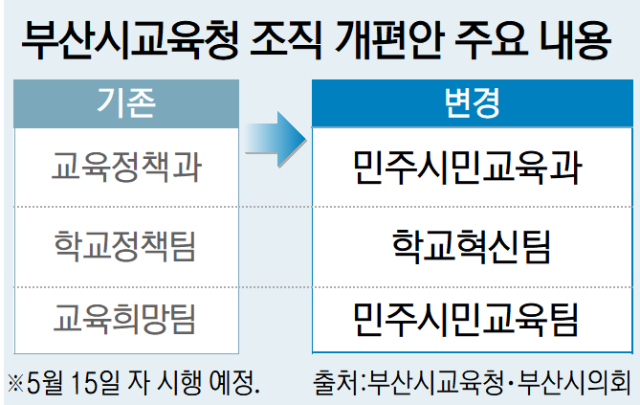 조직 개편에 진보 성향 반영… 부산교육감의 '좌클릭'