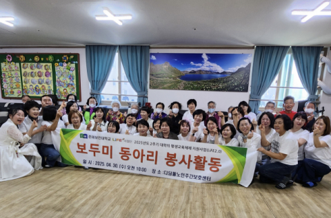 춘해보건대학교(총장 김희진) 사회복지케어과(학과장 서화정), 산림조경비즈니스과(학과장 김형수), 웰니스문화관광과(학과장 한선희) 총 3개가 지난 4월 30일 울산광역시 남구에 있는 디딤돌주간보호센터에서 LIFE 2.0 평생교육체제 지원사업단의 일환으로 ‘보두미 봉사활동’에 참여했다.